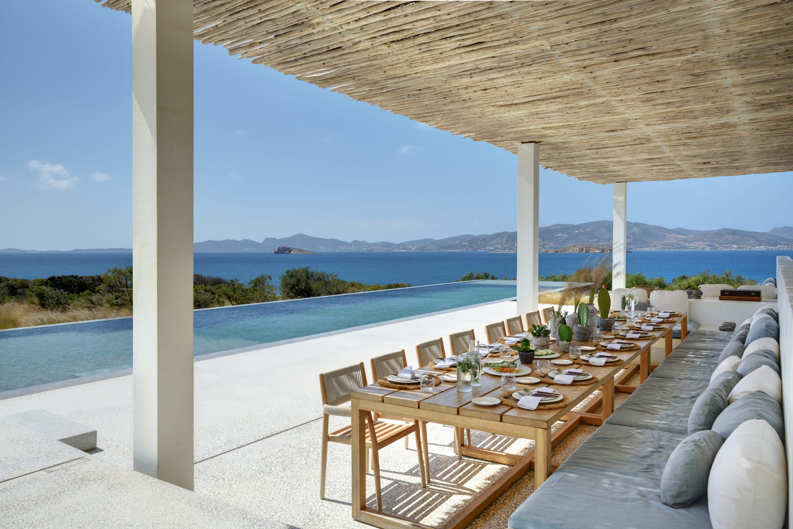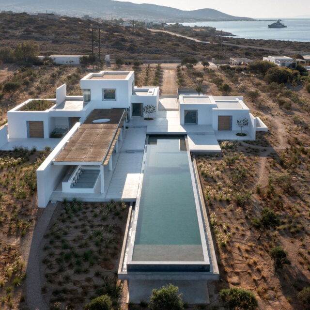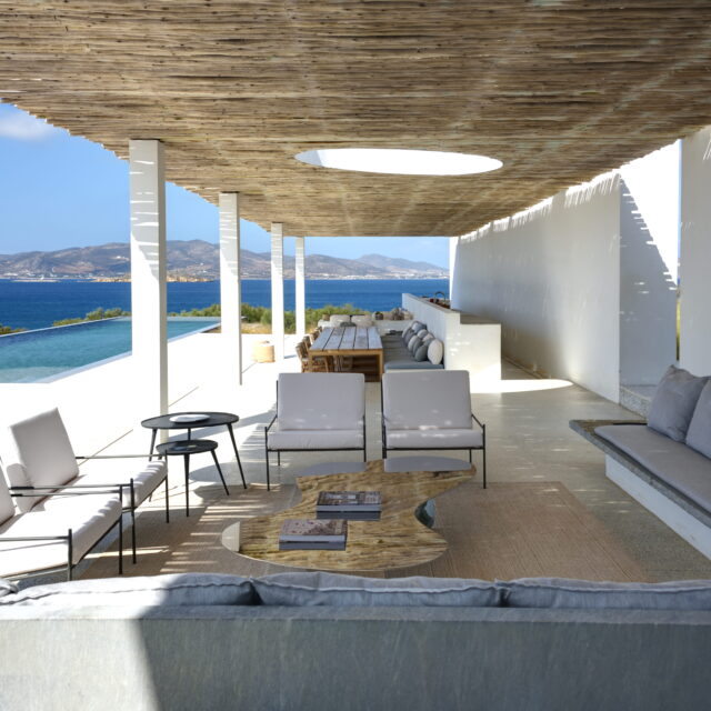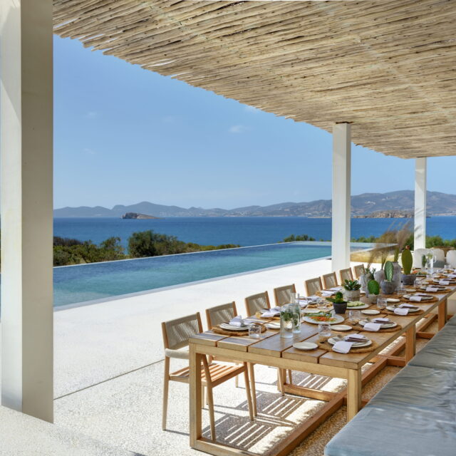Designed and built by the renowned architect Christina Seilern in 2021, and featured in the 2025 Amazon Prime series, Malice, the house is large, with ample entertaining space, both inside and outside, a 270-degree view of the sea and beautiful islands including Antiparos, as well as a huge infinity swimming pool and further lounge/dining area around the pool and sea views.
